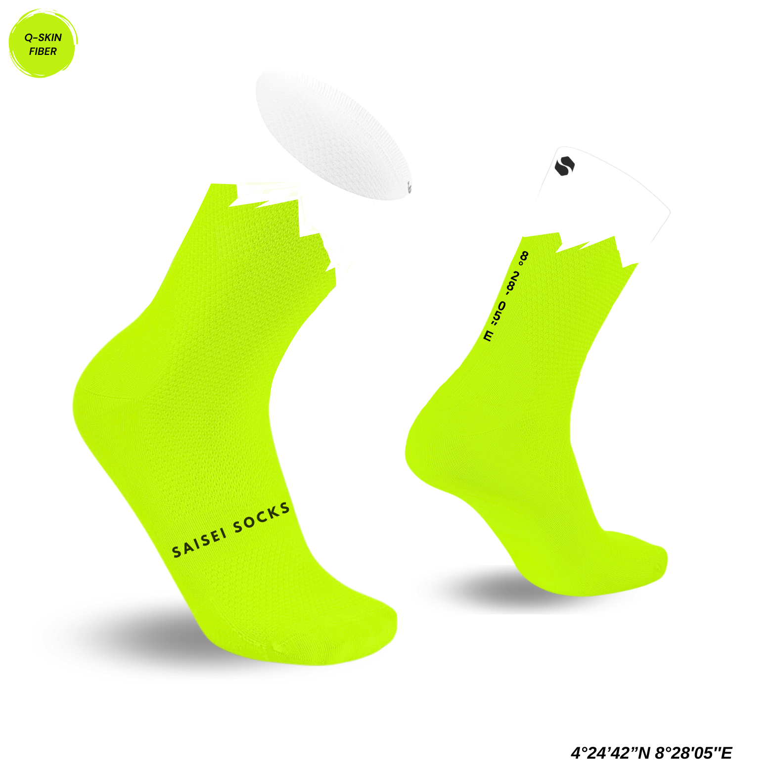Le calze running performance Saisei Socks© sono progettate per atleti esigenti e sviluppate in Svizzera, precisamente nel cuore del Ticino. Grazie alla combinazione al 70% di microfibra Q-Skin di Fulgar©, prodotta in Italia, queste calze offrono leggerezza, traspirabilità e termoregolazione, ideali per corse e allenamenti intensivi.